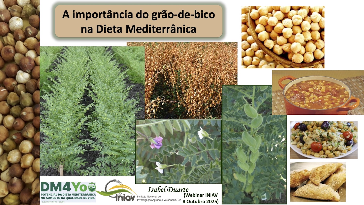 Webinar interno no INIAV intitulado “O Grão-de-bico na Dieta mediterrânica”, apresentado pela Investigadora Isabel Duarte responsável pelo Parceiro INIAV.